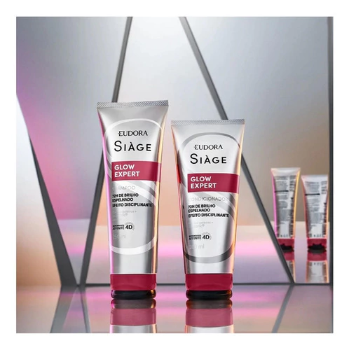 Com fórmula altamente hidratante, o Condicionador Siàge Glow Expert proporciona cabelos 90% mais disciplinados, com 72 horas de brilho e devolução de 100% do brilho dos fios. Além de garantir, selagem para as cutículas, alta capacidade de refletir a luz e um resultado incrível para suas madeixas.