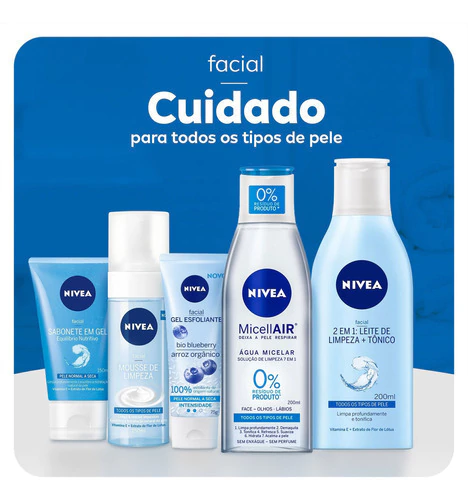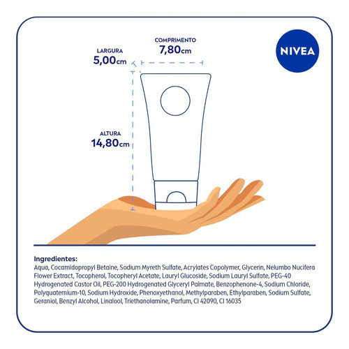 Aplique no rosto úmido o Nivea Sabonete em Gel Equilíbrio Nutritivo, com movimentos circulares e suaves. Evite contato com os olhos. Enxágue abundantemente com água.