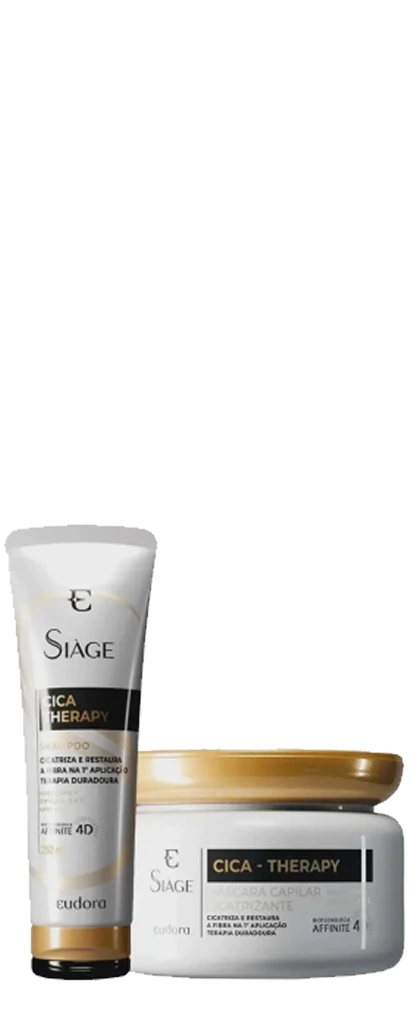 O Kit Eudora Siàge Cica Therapy Shampoo 250ml + Máscara de Tratamento 250g é um kit de tratamento capilar que promete recuperar os danos dos fios, deixando-os mais saudáveis, sedosos e protegidos contra agressões diárias.