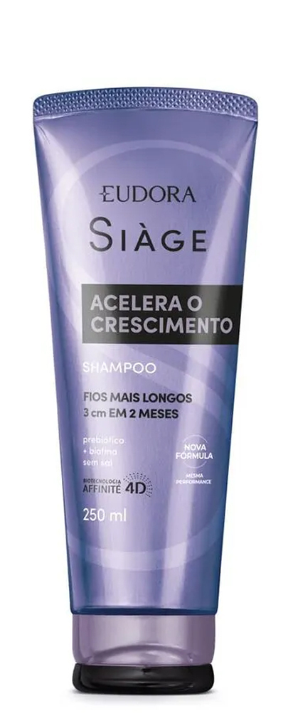 O Shampoo Siàge Acelera o Crescimento foi feito para cabelos com dificuldade de crescimento, reduz e previne a queda natural. Limpa sem ressecar, possui espuma cremosa e favorece o crescimento a partir de 12 lavagens. São 3 centímetros de comprimento dos fios em 2 meses e 1.500 fios em 1 mês.